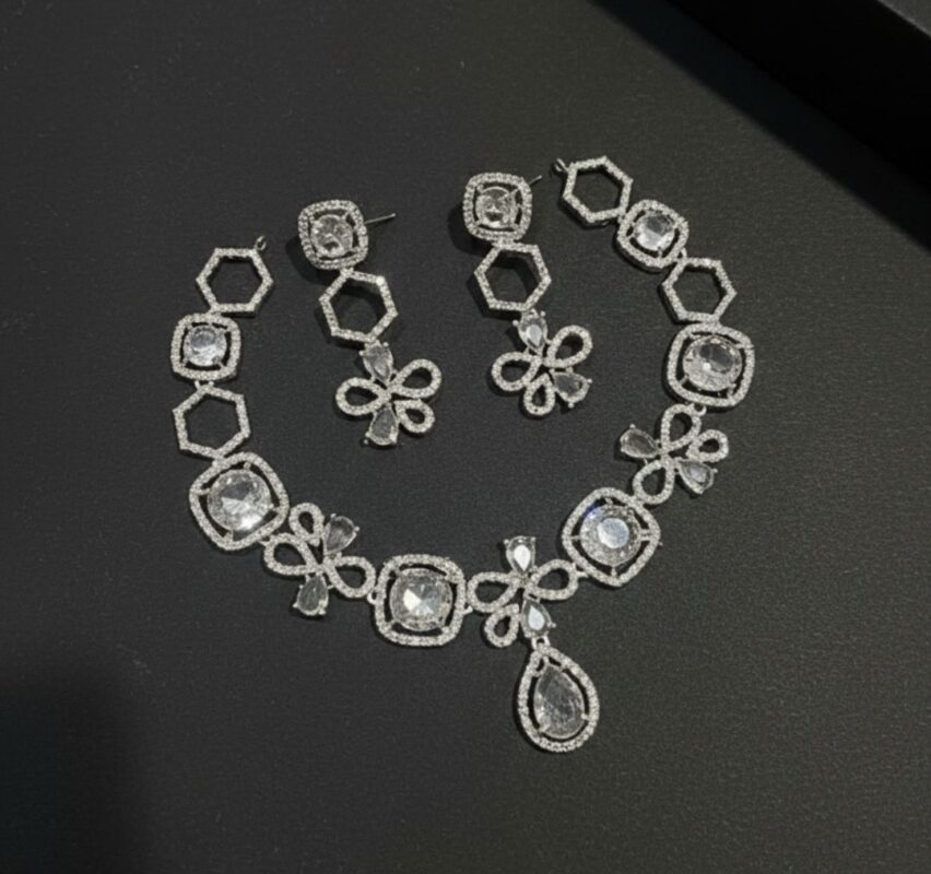 ✨ American Diamond Necklace Set ✨ Brilliant sparkle with elegant finish 💎 Available in 5 beautiful colours
